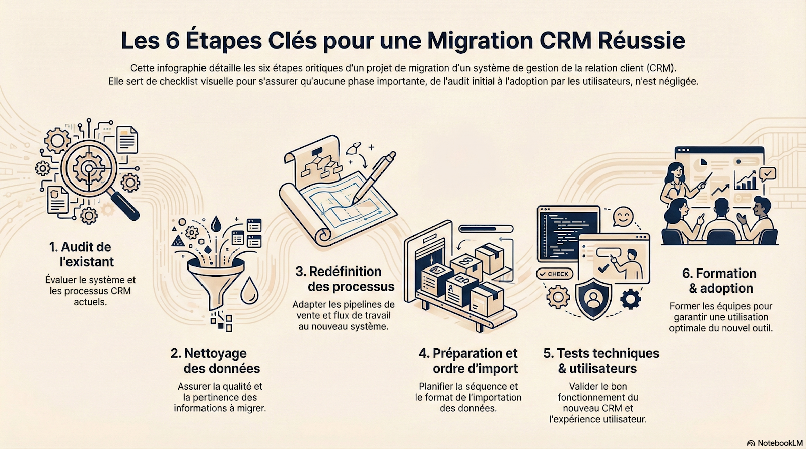 - Mapper les champs ancien système → nouveau CRM